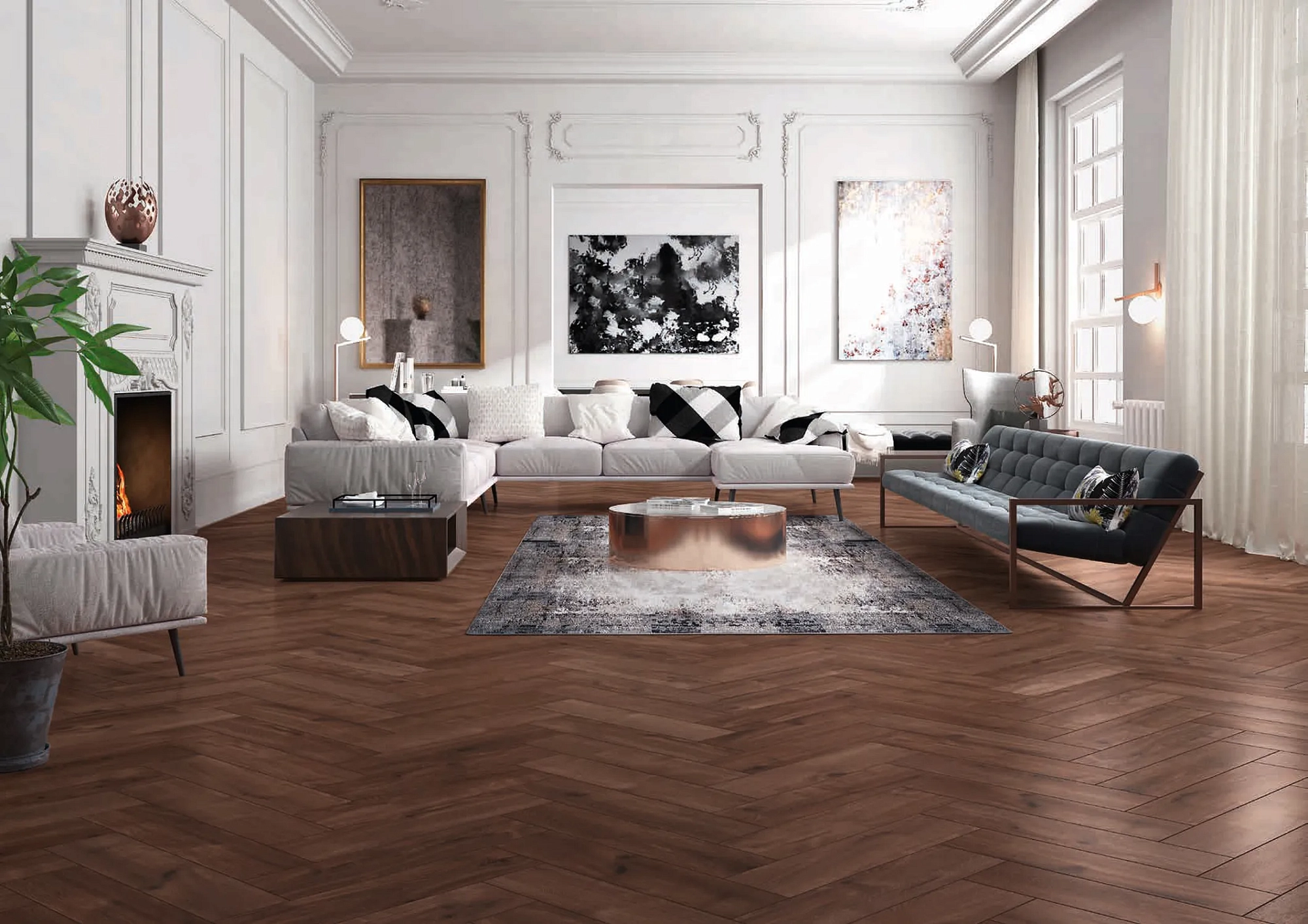 Херрингбон Манор+ — это эталонное качество и дизайн от известного европейского завода Classen, Германия. Визитная карточка коллекции — роскошный декор «английская ёлочка» с безупречной имитацией текстуры натурального дуба. Толщина панелей 10 мм, 32-й класс износостойкости, водостойкость, четырехсторонняя фаска с дополнительной защитой от влаги, антибактериальная и антистатическая обработка, матовая поверхность, современный замок и сертификат экологичности Blaue Engel.